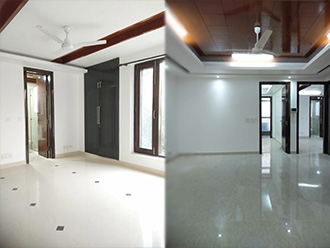 Chittaranjan Park (233sqyards) first floor 3 Bedrooms 3 attached washroom modular kitchen two balconies Sun facing with lift reserved car parking servant quater toilet area 2100 sqft excellent location.